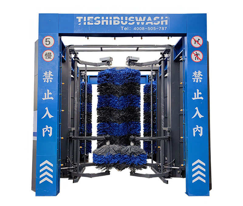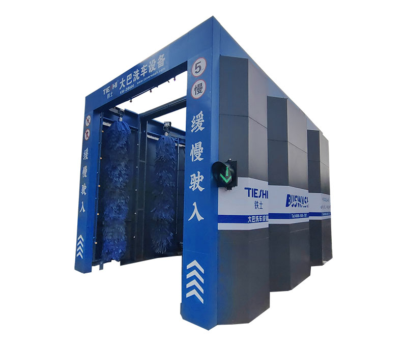 清洗時由駕駛員配合操控。巴士快速洗車機可進行連續快速洗車,每小時高可達80輛,自動化程度高、洗車數量大、占地面積小;廣泛應用于各大公交系統,停車站場,以平均每小時20輛的清洗速度作業,常見的情況為兩臺或三臺并聯式安裝,可滿足停車量為1000左右的大型停車場的需求。
