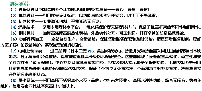 瑞安凱沃公司洗車設備從研發到生產,直接到客戶手中,沒有中間商環節,價格更加實惠,還會得到更好的保修服務。 我們首家推出:買洗車設備就可獲得從籌備到開業的全方位支持。不僅省心省力,同等規模的經營項目更比加盟別人品牌節約投資30%以上,因為我們設備都是廠家直銷價,還可以從我們這里得到經營、管理、培訓、原料配給、技術支持等全方位的免費增值服務;更沒有所謂的加盟費、保證金和品牌使用費。市面上也有一些加盟企業對外宣稱免收加盟金、保證金和品牌使用費,卻變相的把產品價格翻了幾倍,照樣賺翻加盟商的錢,最后發覺上當受騙還得不到什么實際的支持,任加盟商在大浪淘沙般的市場中自生自滅。